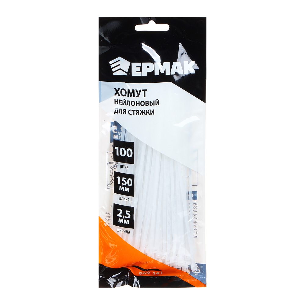 ЕРМАК Хомут нейлоновый для стяжки 2,5х200мм, белый 100шт/уп