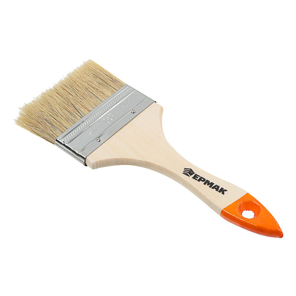 Кисть ЕРМАК малярная плоская "Бейсик" нат. щетина 3" (75 мм). Имеет прочную рукоятку и надежно закрепленную щетину, что позволяет досконально окрашивать любые гладкие и шероховатые поверхности, профилированная рукоять облегчает удержание кисти в руках. А за счет высокой плотности щетины, впитываемость повышается и краска равномерно распределяется по поверхности.