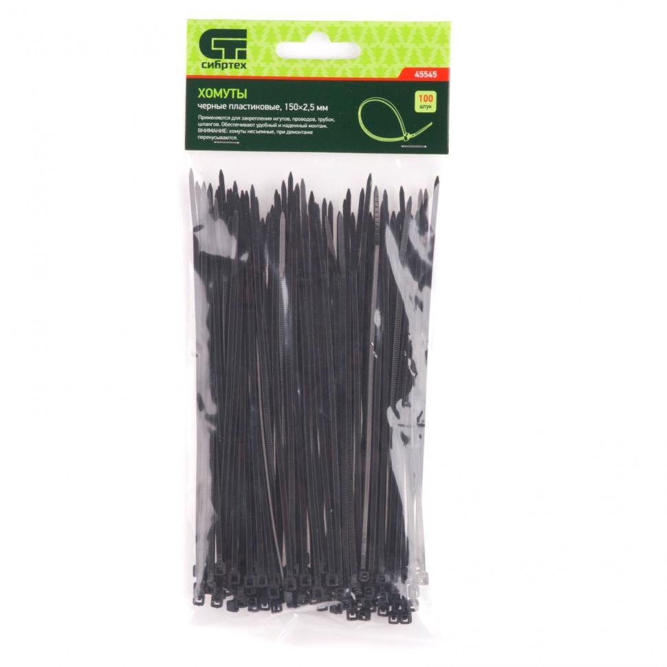 Хомуты, 150 х 2,5 мм, пластиковые, черные, 100 шт.// Сибртех
