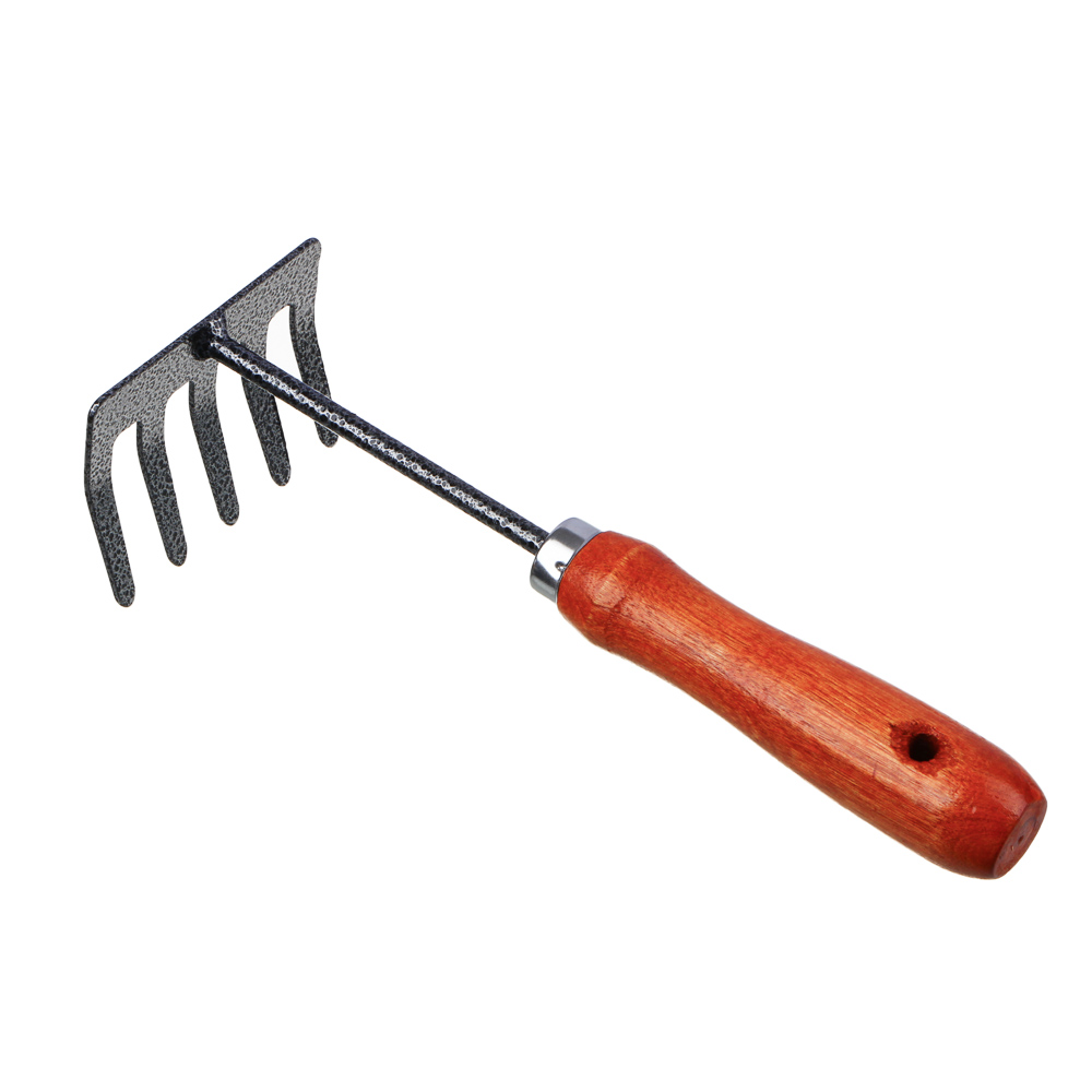 Небольшие садовые грабельки INBLOOM размером 25х8,5 см предназначены для обработки почвы на цветочных клумбах и грядках, рыхления и разбивания комьев разрыхленной земли. Инструмент с пятью зубцами оптимален для проведения аэрации почвы, исключая травмирование корневой системы культурных растений. Выполнены из качественного прочного металла, который легко очищается, не боится взаимодействия с водой и удобрениями. Удобная деревянная ручка не выскальзывает из рук, обеспечивая комфорт во время работы.