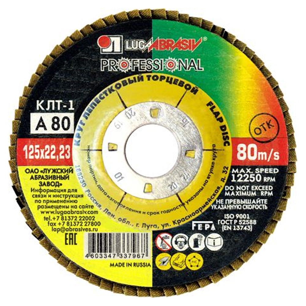 Круг лепестковый торцевой КЛТ 1 125х22 KK10XW P80 Луга