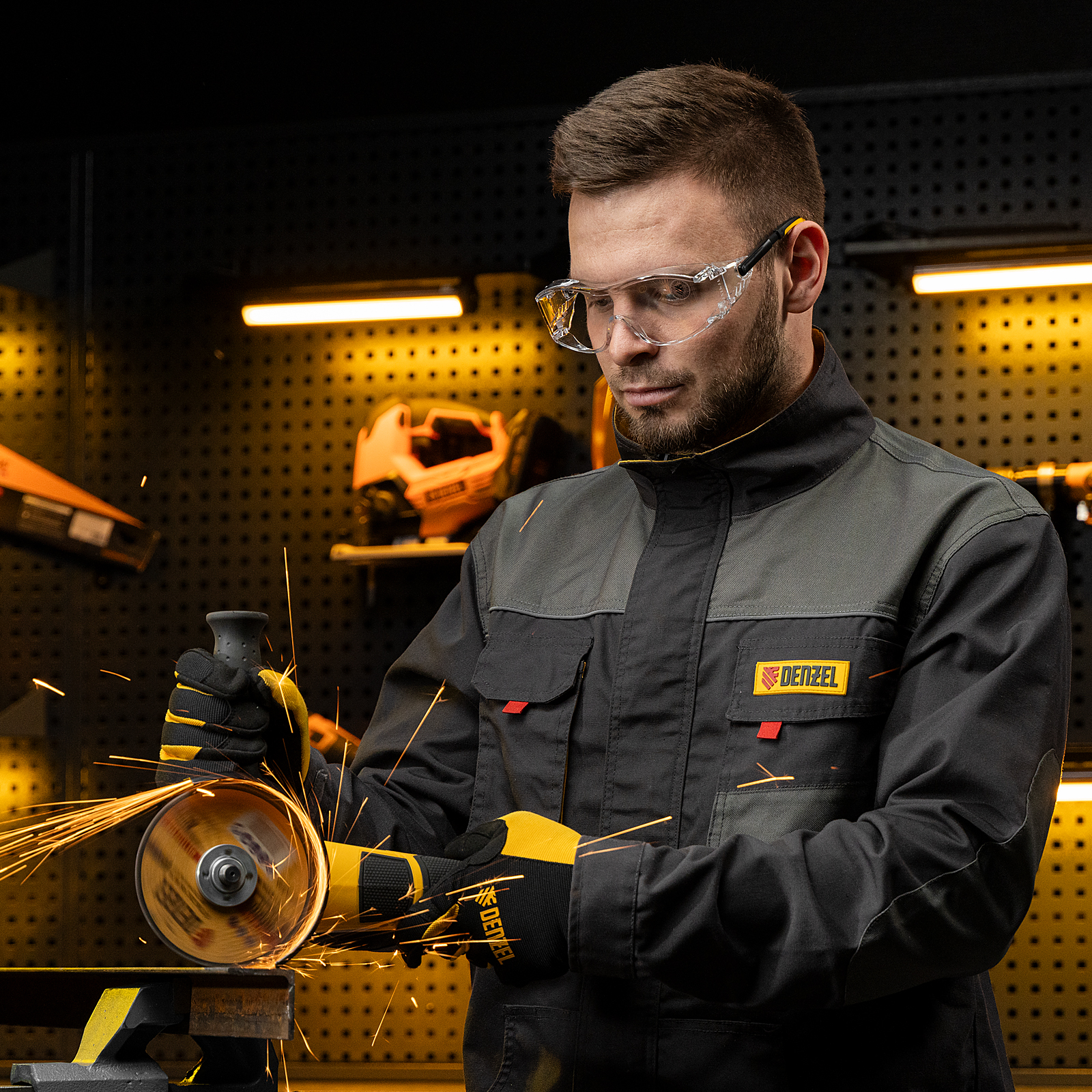 Очки защитные открытые, поликарбонатные, увеличенная прозрачная линза, регулируемые дужки// Denzel