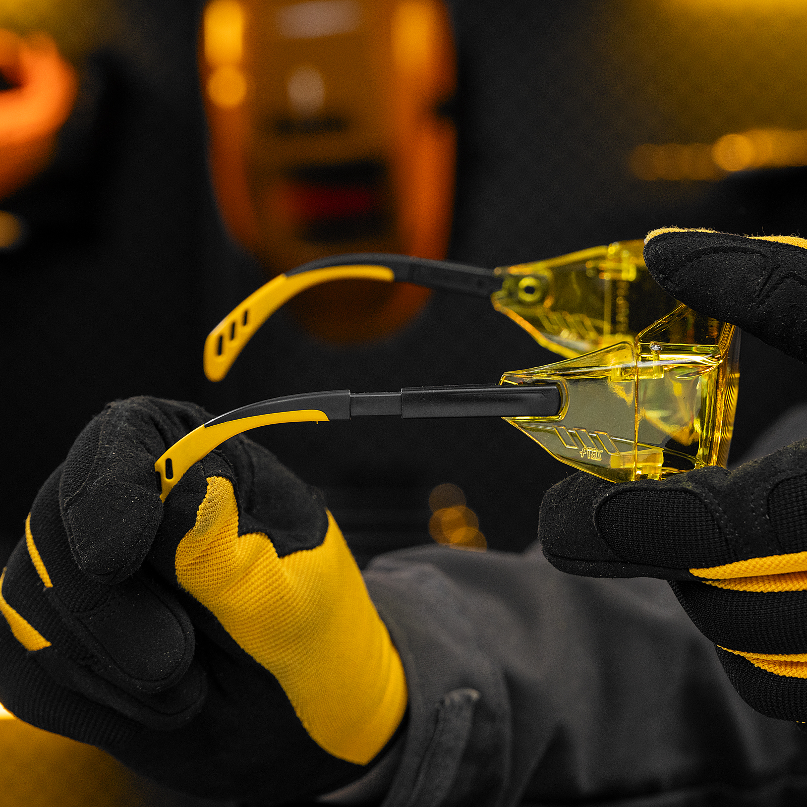 Очки защитные открытые, поликарбонатные, увеличенная желтая линза, регулируемые дужки// Denzel