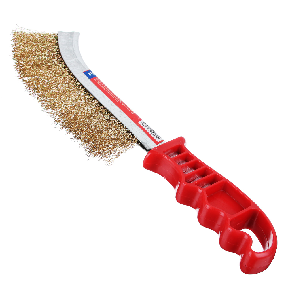 Щетка по металлу строительная от бренда Рокот. Ее используют, чтобы снимать краску и ржавчину и зачищать металл. Латунный ворс: средняя жесткость. Подходит для обработки цветных металлов, дерева, некрупных изделий. Удобно работать: рукоятка пластиковая с вырезами для пальцев.