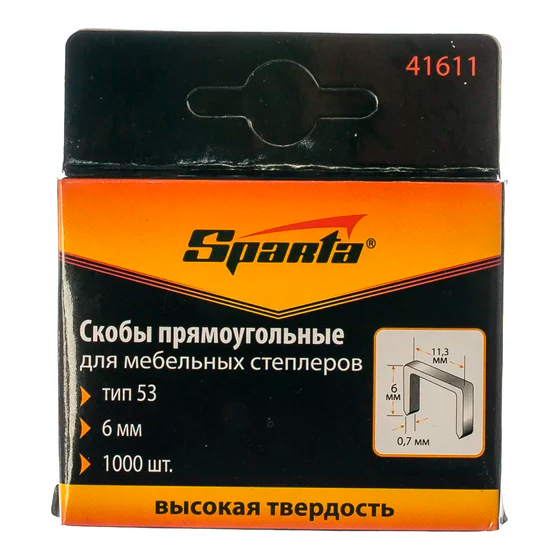 Скобы, 6 мм, для мебельного степлера, тип 53, 1000 шт.// Sparta