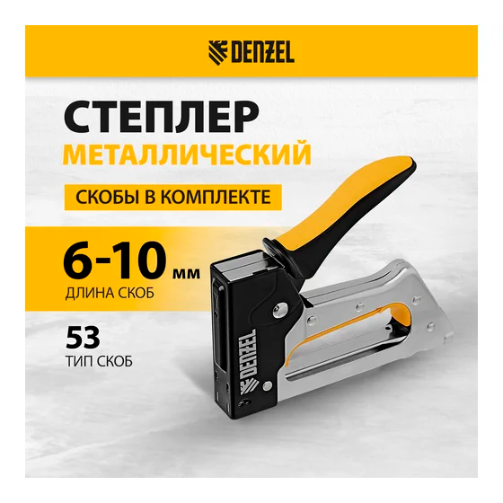 Степлер металлический, скобы в комплекте, 2К рукоятка, тип 53, 6-10 мм// Denzel