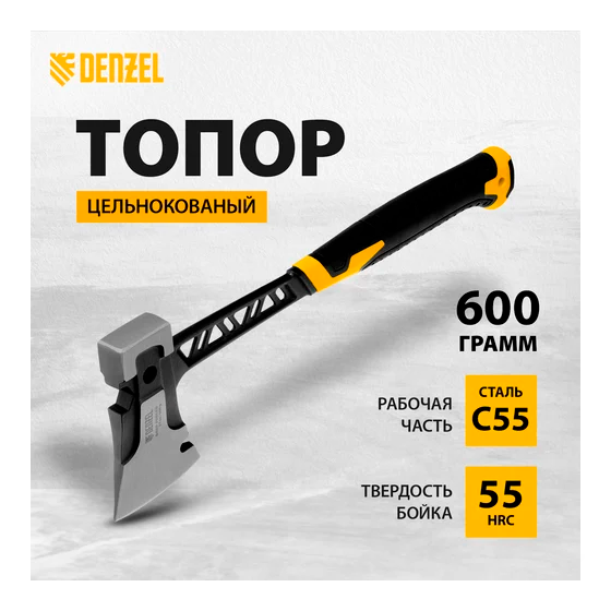 Топор цельнокованый, 600 г, двухкомпонентная обрезиненная рукоятка // Denzel